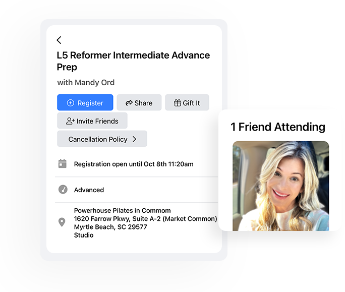 Not only will clients see who is teaching class, but with their friends’ permission, they’ll also see which friends are attending that class.