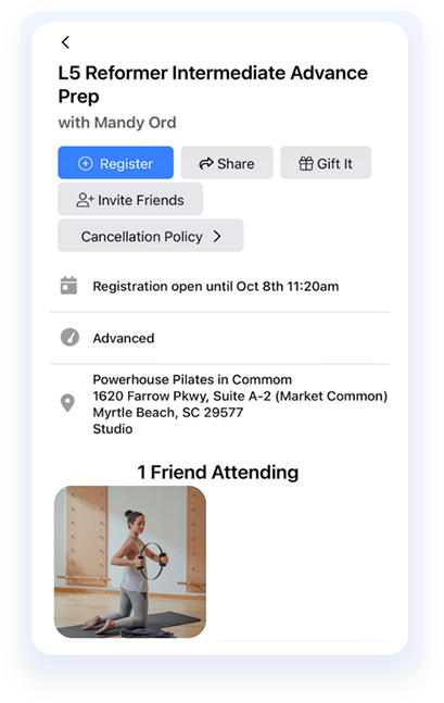 When clients sign up for a class, they are prompted to invite their friends directly through the app and notified via Push Notification.